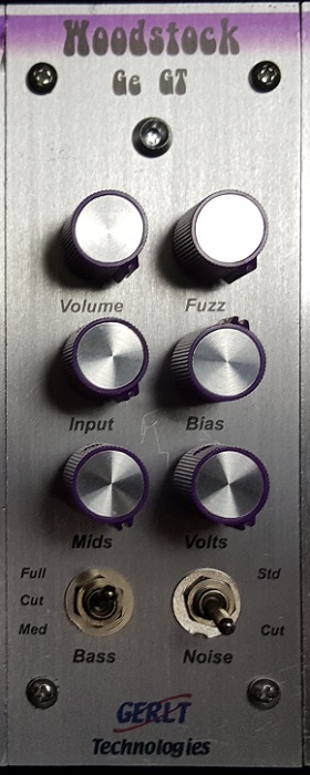 The Fuzz Face is undisputedly one of the more famous effects pedals of all times. It seems to have been used by nearly every guitarist at some point, with many of them using it as a cornerstone of their tone. The only thing that rivals its popularity is the variety of opinions players hold on how it can best be used, which versions, clones, or copies are best, which magical components give it "that sound", and the many other facts and fables that have sprung up and added to the mystique of a relatively simple effect circuit. We won't address all of those issues, many are matters of opinion and have no right or wrong answer. There are a few facts that we will provide here to perhaps help guide you through the configurations and options we offer in our Woodstock module.