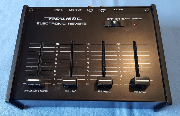 One of the cool audio components they offered was the Realistic Electronic Reverb, Model 32-1110. It allowed you to add a reverb effect to just about anything you wanted to connect to it, from microphones to instruments to TVs, record players, and other audio equipment. Technically, it is a delay, not a reverb unit. But the short delay time it produced gave a good and simple reverb effect, just like you can get with any delay pedal by shortening the delay time and limiting the repeats, perhaps adjusting the mix to be a little on the dry side. The delay was produced by the Panasonic MN3207 BBD and MN3102 clock chips. This was the second generation of the MN3x07 chip from Panasonic. It ran at 9V, instead of the 15V of the first generation MN3007 chip. The lower max voltage limits the clean headroom available, generally making them less desirable for clean delays than the older MN3007. Since the unit was designed for a wide variety of devices, it could receive a wide variety of input signal strengths. It has Mic/Instrument as well as Line level inputs and outputs. Presumably to help compensate for the various input levels, Realistic added a Microphone Level control to the Delay, Repeat, and Depth (which is like a Mix) controls. The Microphone Level control is really just an input gain control for the mic input, which is a quarter inch jack, meaning it is also used for guitars. At lower levels, it acts like a mostly clean boost, but as you increase the Mic Level control, it begins to distort. At the max level, it begins to enter Fuzz territory. So, yes, you can use it as intended and get a cool analog reverb effect. Or you can use it as distortion/fuzz with a short analog delay. Of course it wasn't set up as a pedal, so it would be difficult to use it like a normal pedal unless you just used it as an always on reverb.