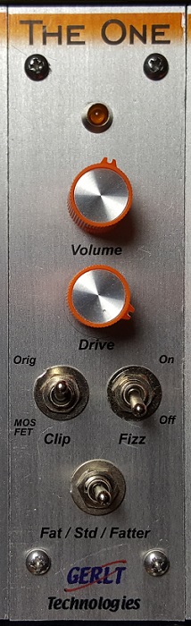 The One is a simple module, with only Level and Overdrive controls. The circuit is similar to some Ibanez pedals that were available at roughly the same time, including the Overdrive II and Tube Screamer. We also make available some options that provide a few more tone possibilities, but staying close to the original sound of the circuit.